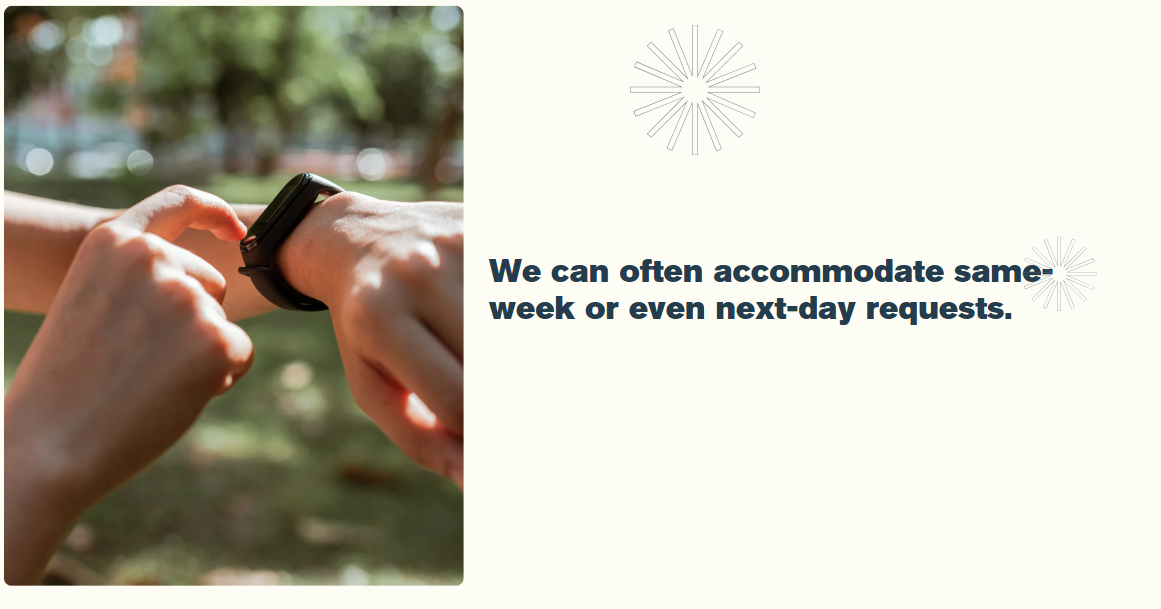 We can often accommodate same-week or even next-day requests. The sooner you contact us, the more options we can offer.